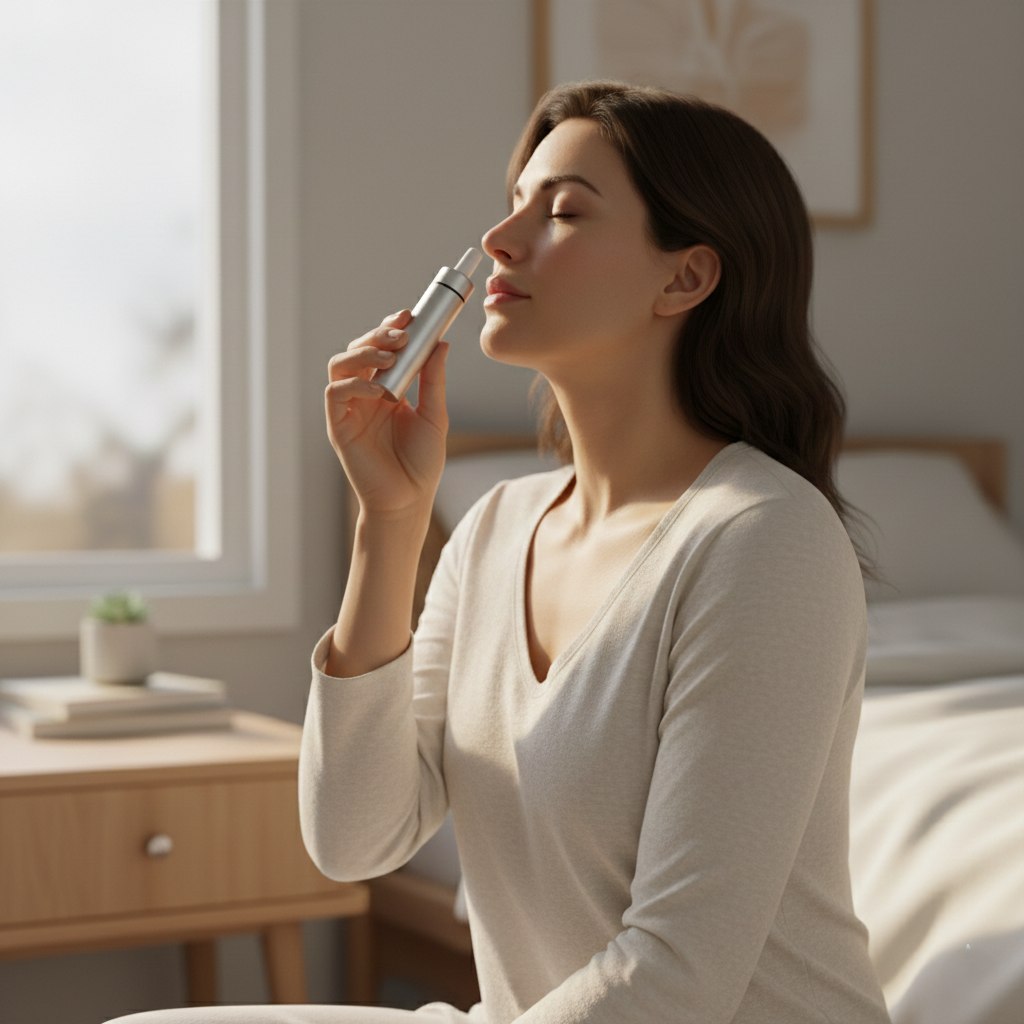 Dans les transports, au bureau, avant une réunion, ou le soir dans le lit, il devient un petit réflexe. Quelques respirations lentes suffisent pour ressentir une sensation de fraîcheur ou un apaisement progressif.